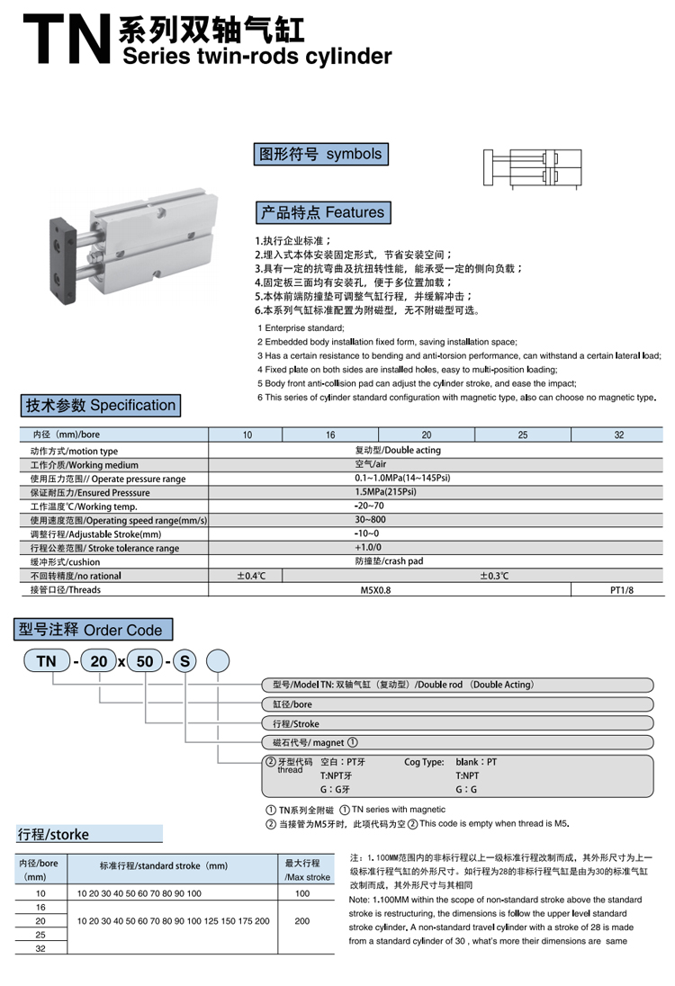 雙缸氣缸TN(TDA)系列非標(biāo)定制可按技術(shù)參數(shù)氣缸選型定制