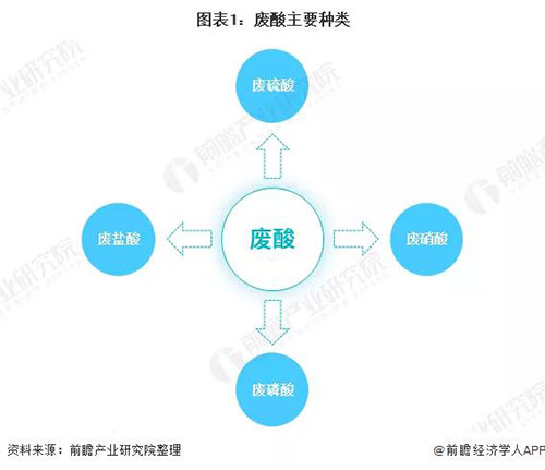 工業生產中,廢酸產生于有機物的硝化、酯化、磺化、烷基化、催化和氣體干燥等過程,或產生于鈦白粉生產、鋼鐵酸洗和氣體干燥等過程。廢酸主要種類包括廢硫酸、廢硝酸、廢磷酸、廢氫氟酸等,其中廢硫酸的排放量占絕大比例。