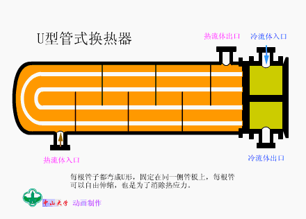 缺點:管內清洗不便,管束中間管子難以更換,管子分布不夠緊湊,殼程流體易短路而影響殼程換熱,且管子會出現彎曲減薄,所以直管部分需要較厚的管子,限制了它的使用場合,該換熱器僅適用于管殼程溫差較大,或殼程介質易結垢且管程介質清潔,高溫、高壓、腐蝕性強的場合;
