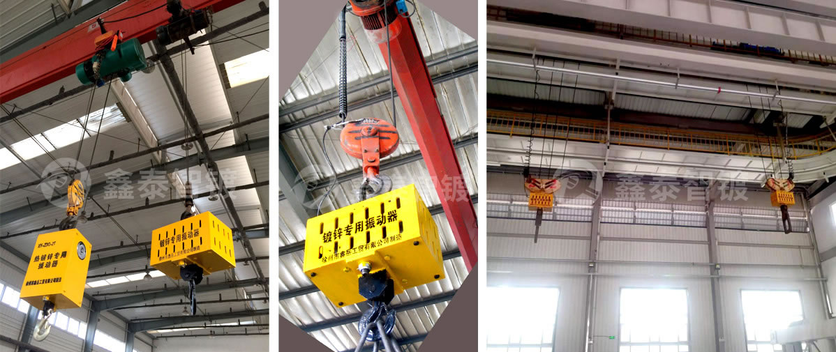 4、工作時待工件全部浸入鋅液后,開啟電源使其振動。由于振動頻率高,振幅適中,振動力通過鋼絲繩傳導(dǎo)至工件,使其在鋅液中高頻振動。“灰、渣”泛完后,關(guān)閉電源,停下振動器,用打灰刀將懸浮的"灰渣"打干凈。然后用行車以1.2米~1.5米/分鐘的速度將工件提出鋅液。 5、待工件全部離開鋅液面后開啟振動器,使工件上多余的鋅瘤經(jīng)振動后落入鋅鍋內(nèi)。